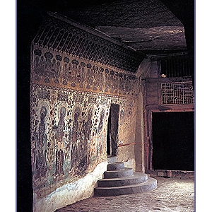 晚唐代表窟之一,五代重修。覆斗形顶殿堂窟。主室东壁门上方有墨书供养人题记,故又称“索法 律窟”。主室四壁共绘经变画十幅。西壁佛龛南北两侧分别画普贤变、文殊变。南壁绘法华、观无量寿佛、弥勒等经变。北壁绘华严、药师、天请问等经变。东壁南 北两侧绘报恩、维摩诘经变。南、北、东三壁经变下方各绘有关上述经变之各品故事画的条形屏风画。此窟较为精彩的画面有弥勒经变中的“婚礼图”和法华经变中 的“作战图”,作为了解 ...