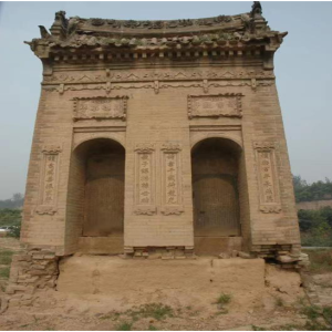 槐树园双碑楼槐树园双碑楼,位于灵宝市函谷关镇槐树原村东北部。碑楼分三部分,下有座,为青石垒砌,座高0.33米,楼正面双龛,通长3.57米,宽2.02米,通高约5米,顶部仿悬山式建筑,上有砖雕牡丹花草纹脊,前有垂脊和戗脊,脊前有吻,檐下有垂帘柱,再下为双碑龛。正面、碑面共有四副砖雕对联,该碑楼文字由清末灵宝名人薛书常撰写,书法艺术较高。该碑楼 ...