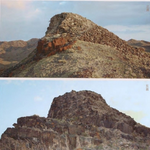 大红山北烽火台位于新疆维吾尔自治区哈密地区巴里坤哈萨克自治县八墙子乡大红山村大红山顶上,其周围为山脉和草场。南约7千米为八墙子岩画,西约3千米为巴里坤县城至三塘湖乡的公路,北4千米为岔哈泉烽火台。烽火台因风雨侵蚀南壁坍塌,北壁保存较好。烽火台呈六边形,边长约3.5、残高约5米。外部系片石垒砌而成,片石间用黄泥作浆而黏结,内夹筑植物的枝 ...