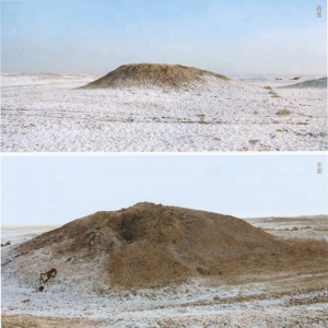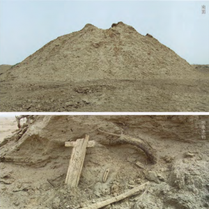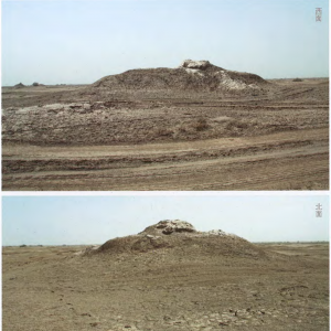 下叶家湖遗址位于新疆维吾尔自治区昌吉回族自治州吉木萨尔县二工乡大泉湖西村西北4.5千米。遗址四周均为耕地,东0.1千米生长有高大榆树、1・5千米为居民点,4.5千米为叶家湖青场挞遗址,东南60米为沙石路,西北1千米为北庭故城,东北距古尔班通古特沙漠16千米。遗址平面呈长方形,南北70、东西40米,高出地面1.2~3米,立面呈土丘形。地表无任何建 ...