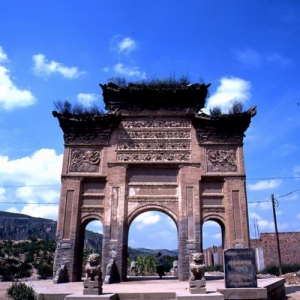 刘至诚孝行坊,清 ,延安,子长县冯家屯西门坪村,石窟寺及题刻,第五批 刘至诚孝行坊 Memorial Archway for Liu Zhicheng`s Piety 清代建筑,位于子长县瓦窑堡镇西门坪村西。坊为四柱三脊密檐式砖砌建筑,高9.5米,面阔7.8米,进深1.2米。系清道光三年(公元1823年)为刘至诚尊敬长辈,孝行卓著所立。正面坊额题“圣书”二字,坊名“敕旌太学生刘至诚孝行 ...