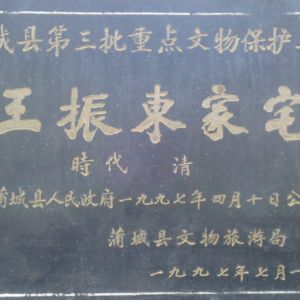 王振东故居,清末 ,渭南,蒲城县城关镇东槐院巷九号,近现代重要史迹及代表性建筑,第五批 王振东故居位于蒲城县城关镇东槐院巷9号,属省级文物保护单位,始建于道光六年,民国十六年曾重建或补建过,坐南朝北,二进院落,自北向南有门厅、前院厢房、客厅、后院厢房、上房,南北总长53.60米,东西宽10.66米,建筑面积约469.7平方米;砖木结构,其中砖雕、 ...