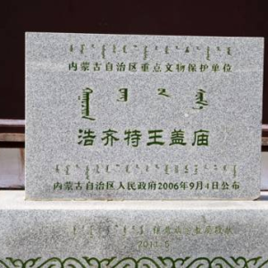 浩齐特王盖庙..清.古建筑.锡林郭勒盟西乌珠穆沁旗.内蒙古自治区第四批自治区级文物保护单位中文名:浩齐特王盖庙总占地面积:3026.4平方米性 质:是一座藏传佛教格鲁派寺院所属地区:内蒙古自治区锡林郭勒盟位 置:中国内蒙古自治区锡林郭勒盟西乌珠穆沁旗类 型:藏传佛教教 派:格鲁派浩齐特王盖庙位于西乌珠穆沁旗吉仁郭勒镇,是国家AA级旅游景区, ...