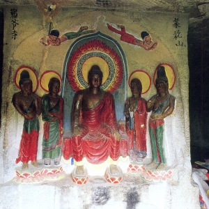 马家河石窟寺 : 马家河石窟寺位于旬邑县排厦乡马家河村 西南1500米处,东北距旬邑县城12.5公里。马 家河村位于三水河东岸,村东南有一山峁名菜花 山。菜花山海拔高度为858米,相对高于马家河 村150米,是这一带三水河东岸的制高点。菜花 山平面呈扇面形,其北侧为悬崖绝壁。三水河从 山脚下峡谷北来西折蜿蜒而去,使菜花山北侧绝 壁正对三水河谷,山顶与河床相对 ...