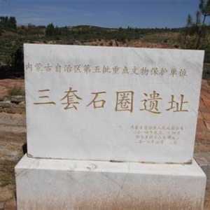 三套石圈遗址..新石器时代.古遗址.鄂尔多斯市伊金霍洛旗.内蒙古自治区第五批自治区级文物保护单位鄂尔多斯市伊金霍洛旗纳林陶亥镇布尔洞门村南沟社东,有一处被当地村民称做“三套石圈”的小地名,因被三条沟分割成品字型的三个山包而得名。 三套石圈遗址村民所称“石圈”,位于鄂尔多斯市伊金霍洛旗纳林陶亥镇新庙村南沟社三套石圈东坡,南与陕西接壤,东 ...
