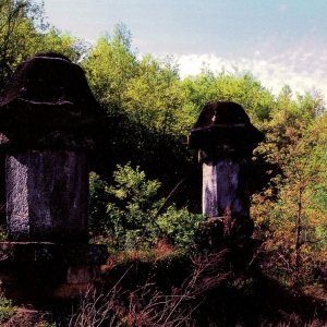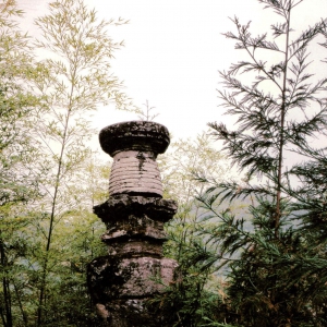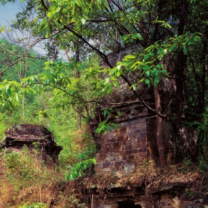 离尘寺僧从塔 : 离尘寺僧人塔。位于汉阴县汉阳镇天池沟口村,为清代所建, 现存两座皆残缺,残高分别为3.5米、4.3米。 Lichen Temple Monk Pagodas The Lichen Temple Monk Pagodas,which was located in Tianchi Goukou Village,Hanyang Town,Hanyin County,was built in Qing Dynasty. The two existing pagodas are incomplet