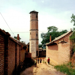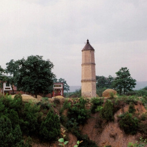 同中村砖塔。清代建造。位于合阳县百良镇同中村村东东沟边。该塔 系青砖砌筑,白灰勾缝,共四层,底层方形,边长1.8米,通高约7米。 The Tongzhong Village Brick Pagoda,built in the Qing Dynasty,is located at east sulcus,Tongzhong Village,Bailiang Town,Heyang County. The pagoda is made of bricks with the white ash in the s