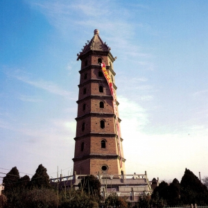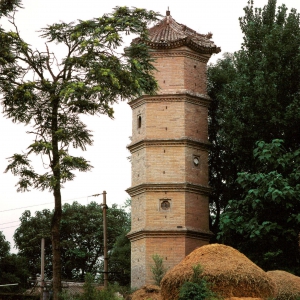 党家庄砖塔。清代建造。位于合阳县城关镇七里村党家庄东南约500米。 包砖夯土芯方塔,边长1.8米,高约7米。The Dangjiazhuang Brick Pagoda,located about 500 meterssoutheast away from Dangjiazhuang,Qili Village,Chengguan Town,Heyang County,wasbuilt in the Qing Dynasty. It is a simulating packages brick rammed