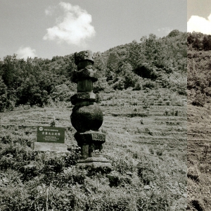 康家坝舍利塔。位于南郑县小南海镇康家坝村4组 高山之巅,清代建造。现已残缺,残高4.2米,底径2.6米。Kangjiaba Sarira PagodaThe Kangjiaba Sarira Pagoda,located on the top of mountain inGroup 4,Kangjiaba Village,Xiaonanhai Town,Nanzheng County, was built in QingDynasty. It is incomplete and the residual