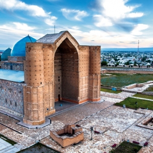 霍加·阿赫梅特·亚萨维陵坐落于南哈州突厥斯坦市,是哈萨克斯坦最著名的建筑物之一。亚萨维是中亚伊斯兰教苏菲教派最重要的传教者之一,被当地人尊称为“父亲亚萨维”。1396年在帖木儿的命令下开始修建亚萨维陵,但未及陵墓竣工帖木儿就过世,因此陵墓的主立面还未完成。但已建成部分的表面镶嵌着蓝色、绿松石色和白色的瓷砖,阳光下熠熠生辉,与未完成的部分形成鲜明对比,也成为该建筑最大的特色之一。 哈萨克斯坦共和国位于 ...