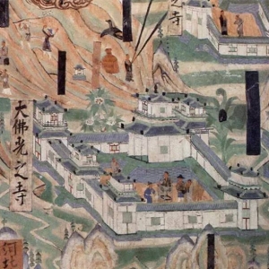 宁公遇不在敦煌,也不在莫高窟壁画。但在61窟,竟仿若再次相遇。 一 61窟|缘起,五台山图 莫高窟第61窟北墙,就是名满天下的壁画--《五台山图》,画面东起河北正定,西至山西太原,全景展示了五台山周边方圆五百里的山川地形和社会风情,共绘有城郭、寺庙、楼台、亭阁、佛塔、草庐、桥梁等各类建筑170多处。 《五台山图》有两处榜题让我追忆起2011年的那次旅行,记起那次五台山脚下豆村和