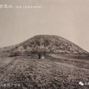 足立喜六所著的《长安史迹研究》一书中,收录有一张阿房宫遗址的老照片。其实,第一次看到书中那张阿房宫遗址的照片,可能有很多人都会觉得那张照片一定是标注错了,阿房宫遗址就是一座近似于长方形的大夯土台,而老照片拍摄的像是一座带有大型覆斗形封土的陵墓,二者看起来似乎并没有什么联系。在《长安史迹研究》一书中,作者足立喜六对于他所见的阿房宫遗址是这样记载的:阿房宫遗址,在距今西安城西三十里三桥镇南被称为阿房村