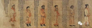 (萧绎《职贡图》前半部分) 南朝·梁。萧绎作(摹本)。绢本设色。纵25厘米,横198厘米。南京博物院藏。(萧绎《职贡图》后半部分) 《职贡图》传为六朝画家萧绎所作,描绘当时各国使节及外族的人物形象与风土人情。整幅画卷图文并茂,堪称别具一格的历史档案,在艺术史上具有重要价值。(唐阎立本《职贡图》) 职贡指古时外国或藩国按时向朝廷贡纳。历代均绘制有职贡图作品,如唐代阎立本就有《职贡图》流传于世。(萧 ...