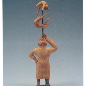 山西大同雁北师院M2出土杂技胡俑 北魏北魏彩绘杂技胡俑为北魏时期陶俑,出土于山西大同雁北师院北魏墓群,现藏于大同市博物馆。该组陶俑由7名胡人俑组成,生动再现了北魏平城时期“缘橦”杂技表演场景:中间胡俑仰头顶杆,杆上两名艺伎作高难度表演,周围六名胡俑持不同乐器伴奏,人物服饰、神态各异,具典型西域特征。这组杂技俑展现了北魏时期百戏艺术的 ...