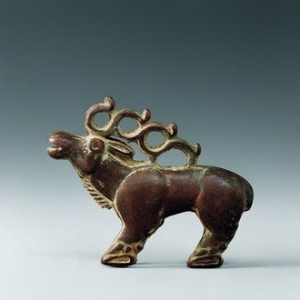 青铜麋鹿西汉时期的文物青铜麋鹿为战国至西汉初期河西走廊游牧民族青铜装饰品,现藏甘肃省博物馆。该文物出土于张掖市,高8.5厘米、长10.5厘米,以写实手法塑造麋鹿(四不像)形象,生动展现动物形态特征。作品铸造工艺体现游牧文化对自然生灵的审美追求,兼具艺术表现力与民族文化研究价值。作为西北地区早期青铜艺术代表,其造型特征及文化属性为研究河 ...