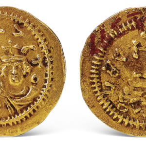 窖藏中还出土一枚希拉克略(Heraclius,公元610~640年在位)时期的东罗马金币,后被证实为仿制品。同其他欧洲钱币一样,东罗马钱币为圆形无孔。然而,中国境内出土的东罗马钱币,大多数两端钻有小孔,使其可以缝合于衣物之上。部分在上端钻有一孔,作为挂坠佩戴。东罗马金币(仿制品)正反面1970年何家村出土唐代,公元7世纪末/8世纪初直径2厘米陕西历史 ...