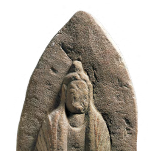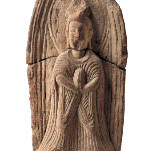 北魏菩萨石造像 北魏菩萨石造像,1981年出土于固原县(今彭阳县)新集乡,宁夏固原博物院藏。红沙岩石质,整体为舟形。中雕一站立菩萨,头戴高花蔓冠,面相长圆;身着通肩袈裟,下摆宽大,两端在两臂部从外向里搭绕自然下垂至腹前,衣褶较密;双手托物前举,跣足站立于实心台座。 ...