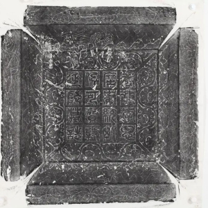 刻于唐咸通十五年(874年)的苏谅妻马氏墓志,志石略呈方形,上半部为古波斯巴列维文(婆罗钵文)6行,下半部为汉文楷书7行,是研究唐代中国与波斯文化交流的重要文物。