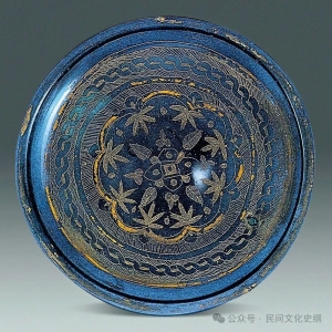伊斯兰枫叶纹描金蓝琉璃盘 唐 陕西省扶风法门寺地宫出土