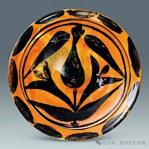 法门寺地宫出土的拉斯特彩罂粟纹黄色玻璃盘。一般认为拉斯特彩自8世纪起源于埃及,为二次烧成,9世纪传入两河流域并移植到陶器上。