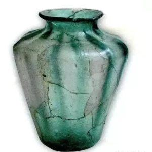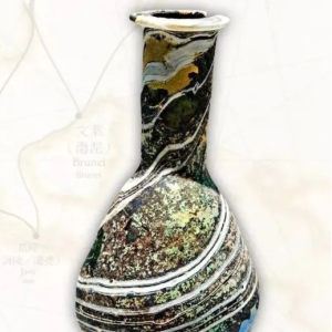 河南洛阳的一座东汉墓出土的缠丝玻璃瓶。这种玻璃瓶不仅器形与中国传统器形不同,其成型方法也和中国汉代玻璃器截然不同,它是采用吹制法制作成形的。
