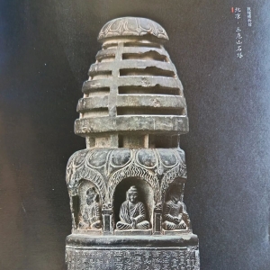 这件文物的发现时间是二十世纪20年代,因其发现于敦煌三危山老君堂所以被称为三危山石塔,后被当时敦煌士绅埋于三危山王母宫。在埋藏之前,有人将石塔塔基线刻和塔腹文字拓了一份拓本,只是该塔出土时发愿文完全剥落,经文及刻像也有残泐(le 石头因风化遇水而形成的裂纹)。1981年5月,该塔才于敦煌市三危山王母宫正式出土。 北凉石塔是典型的圆锥形犍 ...