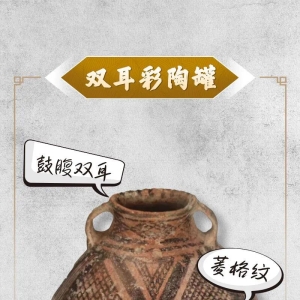 文物简介:这件双耳彩陶罐出自于新疆哈密天山北路墓地,器形别致,做工精致。陶罐口沿内侧及器身外壁按照不同部位满饰黑色的菱格网纹、菱格三角纹、交叉宽带纹,线条细密规整,美观大方。双耳彩陶罐的纹饰风格明显受到甘青地区彩陶文化的影响,反映了中华文明多元一体、兼收并蓄的特征。 ... ...