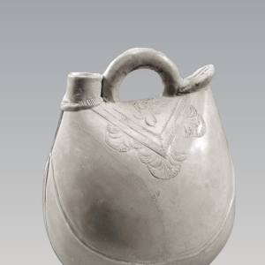 内蒙古奈曼旗辽代陈国公主墓出土带柄乳丁玻璃瓶,具有伊斯兰风格。