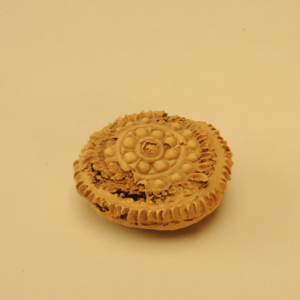 宝相花纹月饼在吐鲁番阿斯塔那墓地出土的各种面食中,宝相花纹月饼无疑是中华饮食文化的典型代表之一。宝相花纹月饼,是1972年吐鲁番阿斯塔那230号墓出土,以小麦粉为原料,模压成型,烘烤制成。呈圆形,土黄色,其上的宝相花纹清晰可见。月饼制作精致,花纹图案搭配得错落有致,造型新颖别致,充分体现了当时人们高超的面点制作技艺。 ... ...