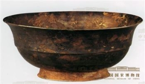 银碗唐高7.6厘米,口径17.7厘米,足径9.2厘米1970年陕西省西安市何家村窖藏出土该碗折腹,素面,碗底内有墨书“十一两一分强”6字。折腹是西方陶器、金银器上较流行的作法,不仅对中国的金银器形制有影响,在公元8世纪初中国的三彩器上也有模仿这种金银器皿的造型。这件折腹银碗时代应在公元7世纪末至8世纪初,其墨书标明器物的重量,反映了唐人是如何对金 ...