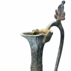 唐凤头人面铜壶 西安市临潼区新丰镇出土 现藏西安临潼博物馆唐凤头人面铜壶, 高29.5厘米,腹径14.5厘米。1985年西安市临潼区新丰镇出土,现藏于西安临潼博物馆。该壶凤首龙柄,壶颈细长,喇叭形圈足。壶腹铸有6个高浮雕人头面,其人额头分发,面部丰腴,目深,弯眉,大眼,小口,隆鼻,两两共结一条发辫,脸形和发式显示了天竺(今印度)人的特征。这种奇 ...