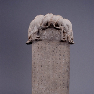 大唐舍利塔之碑 唐代 长23.00厘米,宽18.00厘米,高49.00厘米 灰陶质,由碑首、碑身、碑座组成,碑座为鳌形,首残缺。其碑文中有“镇于唐邽川”,“天宝六载”及“永安寺”等历史地理信息,具有极高的史料价值,出土于秦州区东方红村唐代地宫。 ...