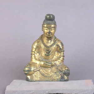 ///十六国时期,鎏金坐佛。铜制,高13.2厘米1979年出土于长安县黄良公社石佛寺现藏于西安博物院十六国鎏金坐佛十六国鎏金坐佛,西安博物院小雁塔,4分钟鎏金坐佛有这样一件十六国时期的文物,1979年长安县黄良公社石佛寺出土一件十六国时期的鎏金坐佛。佛陀呈现坐姿,面形方圆,广额,面带微笑。头顶束发,钵形肉髻,身着圆领通肩袈裟,胸口衣纹呈“U”形, ...