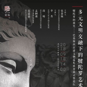 文研论坛 | 第73期 2018年9月18日下午,“北大文研论坛”第七十三期在北京大学静园二院208会议室举行,主题为“多元文明交融下的犍陀罗艺术”。此次论坛亦为“巴基斯坦古迹文物巡礼展”的开幕式。北京大学外国语学院副教授张嘉妹主持,北京大学外国语学院党委书记李淑静、巴基斯坦驻中国大使馆一等政治秘书拉赫·塔里克出席并致辞。北京大学外国语学院教 ...
