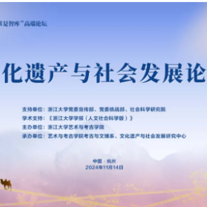 11月14日,浙江大学“求是智库”高端论坛——“文化遗产与社会发展论坛”在杭州召开,来自国内高校和研究机构的著名专家学者、学术期刊代表等百余位嘉宾参加本次论坛,围绕“文化遗产与社会发展”这一学术前沿议题展开深入研讨交流。论坛开幕式上,浙江大学艺术与考古学院“文化遗产与社会发展研究中心”(以下简称“中心”)正式揭牌。中国文物学会会长顾 ...