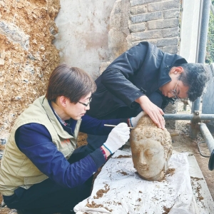 4月10日,记者从龙门石窟研究院了解到,为配合龙门石窟东山擂鼓台南洞加固维修保护工程,考古人员对擂鼓台南洞前壁(西墙)内的填充物进行清理时,出土了较多精美遗物,并发现石刻造像和建筑构件80余件,这是龙门石窟首次在古代维修工程的墙壁内发现造像。本次出土遗物以石刻造像为主,有佛头、菩萨像残件、头部残件、花纹残件、莲座残件、造像脚部残件和1 ...