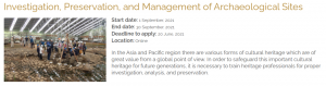 考古遗址的调查、保护和管理报名截止时间;2021年6月20日培训时间:2021年9月1-30日地点:线上主办方:日本文化厅、联合国教科文组织亚太文化中心(ACCU)来源:https://www.iccrom.org/courses/investigation-preservation-and-management-archaeological-sites-1小编提示课程主题分为:1.亚太地区文化遗产保护案例研究;2.考古遗址保护的全球趋势;3.日 ...