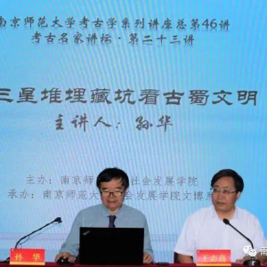 2021年5月18日下午2:00-4:00,应南京师范大学社会发展学院文博系的邀请,北京大学考古文博学院教授、博士生导师、学术委员会主任、文化遗产保护研究中心主任孙华先生在仙林校区敬文图书馆二楼西报告厅,为我校师生带来了题为《从三星堆埋藏坑看古蜀文明》的讲座。此次讲座是我校考古学系列讲座总第46讲(考古名家讲坛第23讲)。讲座由我院王志高教授主 ...