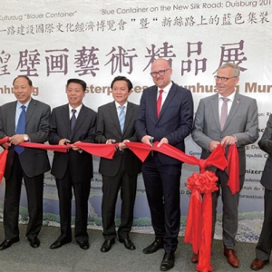2018年6月2日,由德国杜伊斯堡市政府、中国驻杜塞尔多夫总领事馆主导,敦煌研究院、中国敦煌石窟保护研究基金会、德国DCKD德中艺术设计交流协会主办的“丝路瑰宝—敦煌壁画艺术精品展”亮相德国杜伊斯堡,为当日举办的“新丝路上的蓝色集装箱”国际文化经济交流活动添上了极富丝路特色的一笔。展览开幕盛况“丝路瑰宝—敦煌壁画艺术精品展”展出了40幅敦煌石窟壁画高仿艺术品以及彩塑图片,并运用图像、动漫。影视、虚拟现实等高科 ...