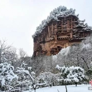 中新社兰州3月4日电 (记者 冯志军)甘肃省文物局局长马玉萍近日接受中新社记者采访时表示,在近年敦煌石窟实现“数字化”并通过多种途径与全球民众“共享”的基础上,以石窟资源为主的甘肃大批不可移动文物“数字化”进度不断加快,未来将通过文创产品或展览形式与公众“互动”。 1月28日,甘肃天水麦积山石窟银装素裹,分外美丽妖娆,在白雪的妆扮下,犹如一幅美丽的画卷。 陈治平 摄 甘肃是中国石窟文物