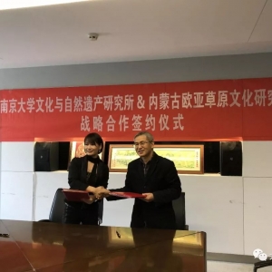 3月27日下午,南京大学文化与自然遗产研究所和内蒙古欧亚草原文化研究院在南京大学历史学院举行战略合作签约仪式,双方共建欧亚草原文化研究中心并拟共同举办欧亚草原文化国际合作论坛。 全国政协委员、南京大学文化与自然遗产研究所所长贺云翱教授,内蒙古欧亚草原文化研究院杨殿欣理事长、冯泽娟秘书长,江苏人民出版社府建明总编辑等出席签约仪式。 欧亚草原地带连接了欧、亚两大洲,形成文化交往的