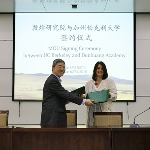 3月27日,敦煌研究院与加州伯克利大学在敦煌签署合作备忘录,正式确定了双方在文化研究与宣教、学者交流与访问以及学术资源与出版物等方面的友好合作关系。加州伯克利大学与敦煌研究院一致同意通过双方的合作,共同发展项目、开展活动,以达到提升学术水平的目的。敦煌研究院副院长赵声良、加州伯克利大学东亚研究所所长凯文·奥布莱恩,敦煌研究院丝绸之路研究中心主任张元林、丝绸之路研究·唐中心主席桑奇约特·梅恒黛儿(Sanjy ...