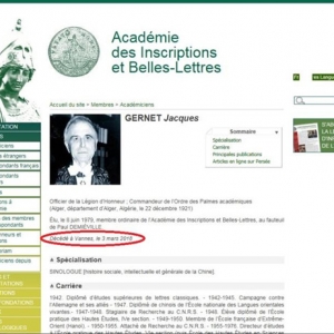 澎湃新闻2018-03-06 15:51来源:澎湃新闻字号据法兰西铭文与美文学院(Académie des Inscriptions et Belles-Lettres)官方网站消息,法国汉学家谢和耐(Jacques Gernet)于2018年3月3日在布列塔尼的瓦纳(Vannes)去世。谢和耐(1921—2018)是法国著名的汉学家、历史学家、社会学家,法兰西学院名誉教授。1945—1947年,谢和耐在法国巴黎国立东方现代语言学院学习汉语。1948年毕业于高等实验学院。1949—1950年在当时设在越南