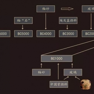 玻璃的起源由滑石珠开始,演变到釉砂(费昂斯),发展成玻璃化釉砂,而后才出现符合现代科学意义的玻璃。公元前5000年左右,滑石珠最先出现于近东和埃及。公元前4000年左右,釉砂最先出现于埃及和两河流域地区;公元前2000年左右,釉砂生产技术逐步向西向北传播,意大利、俄罗斯、中欧、法国、英国等地随即出现了釉砂制品;公元前1000年左右,中国出现了最早的釉砂。公元前2000年至公元前1500年期间,