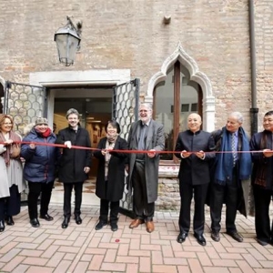 当地时间2018年2月21日14时30分,《丝路明珠:敦煌石窟在威尼斯》展览在意大利威尼斯大学展览空间开幕。策展团队及嘉宾为展览剪彩展览由敦煌研究院,威尼斯大学和敦煌文化弘扬基金会联合主办。意大利文化遗产、文化活动及旅游部,威尼斯市政府为此次展览提供特别支持。展览时间为2018年2月21日至4月8日。展览举办期间,为配合展览还将陆续举办“中国年”与《丝路味道:中意手工面食文化交流》、敦煌艺术活化之