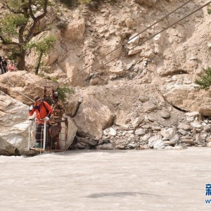 科考队专家乘索道横渡阔克苏河(7月23日摄)。 7月26日,为期6天的“伊犁黑英山——阔克苏古道综合科考”活动在新疆伊犁哈萨克自治州特克斯县落下帷幕。 7月21日至26日,由地质、考古、历史文化等方面专家组成的综合科考队从拜城县黑英山乡出发,翻越天山主脉抵达特克斯县阔克苏河畔包扎墩。对古道沿途博孜克日格河谷、阿克布拉克达坂、阿克库勒(哈萨克语,意为“白湖”)周边以及阔克苏河两岸进行了综合考察。科考队员骑马 ...