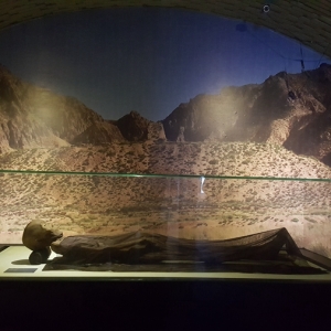 陈列在青海省海西州民族博物馆的千年干尸(6月13日摄)。近日,在柴达木盆地西缘的青海省海西蒙古族藏族自治州茫崖镇,考古人员发现一具距今1700年左右的干尸,保存十分完好。据专家介绍,该干尸出土的地点位于古丝绸之路青海道上,是青藏高原上迄今发现保存最完整、年代最久远的一具干尸。新华社记者 吕雪莉 摄陈列在青海省海西州民族博物馆的千年干尸(6月13日摄)。