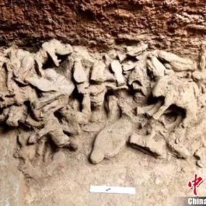 前室西南角随葬陶俑。陕西省考古研究院中新网西安7月6日电 (记者 田进)陕西省考古研究院6日透露,考古人员在陕西西咸新区秦汉新城境内发现一座西魏贵族墓葬,出土了东罗马金币和波斯银币等物,证明丝绸之路贸易往来悠久历史,是研究“一带一路”发展历程的重要资料。这座墓葬由斜坡墓道、2个天井、2个过洞、甬道和墓室组成。前室平面近正方形,有石质墓志、陶质彩俑和模型明器、漆器、金银币、金发簪、玻璃器等遗物200余件。后室平 ...