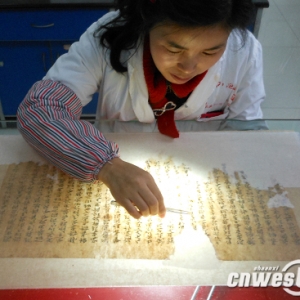 工作人员对神德寺塔内保存的经卷进行修复。专家发现《金光明经》里的“民”字,均缺了一笔。而这样故意写错字,应是出于避李世民讳的目的