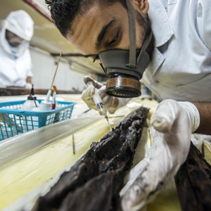 2016年8月31日,埃及考古学家默罕默德·瓦尔(Mohamed Anwar)在位于首都开罗南郊胡夫金字塔后方的修复实验室中,对来自法老胡夫第二艘太阳船的某些部件进行研究。(AA照片)考古学家周三表示,在吉萨金字塔附近一处发掘地点发现的一块木头首次表明古埃及人曾使用金属造船。考古学家在一艘船的部分组件中发现了环形和U形金属钩,这艘船与埋在大金字塔附近的胡夫“太阳船”于同年被发掘。王室陵墓旁的坑穴中埋藏着若干太阳船,它们 ...